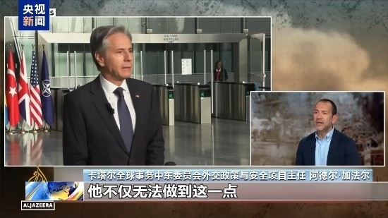 卡塔爾全球事務(wù)中東委員會外交政策與安全項(xiàng)目主任 阿德爾·加法爾:過去一年多布林肯已經(jīng)去了中東至少11次,和中東國家領(lǐng)導(dǎo)人會面,他試圖推動以色列結(jié)束戰(zhàn)爭,但到目前為止,他不僅無法做到這一點(diǎn),而且美國還在外交政策上偏袒以色列,不斷提供武器和資金支持。