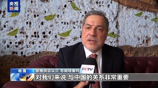 秘魯國會議員 布斯塔曼特:對我們來說,與中國的關(guān)系非常重要,不僅可以在經(jīng)濟和區(qū)域相關(guān)層面上建立重要的聯(lián)系,而且可以促進(jìn)我國的發(fā)展。習(xí)近平主席的訪問不僅能夠加強我們的經(jīng)濟往來,而且還可以加強教育交流。