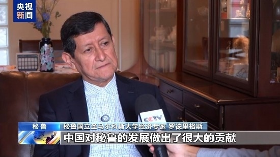 秘魯國立圣馬爾科斯大學(xué)經(jīng)濟專家 羅德里格斯:中國對秘魯?shù)陌l(fā)展做出了很大的貢獻(xiàn)。首先中國從我們這里購買產(chǎn)品,其次中國向我們提供了很多產(chǎn)品,有價格實惠的手機、汽車,提高了許多人的生活水平。