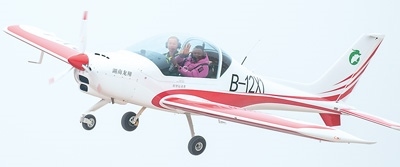 1月18日,在湖南省常德市柳葉湖龍翔低空飛行營(yíng)地,游客乘坐固定翼飛機(jī)體驗(yàn)飛行。