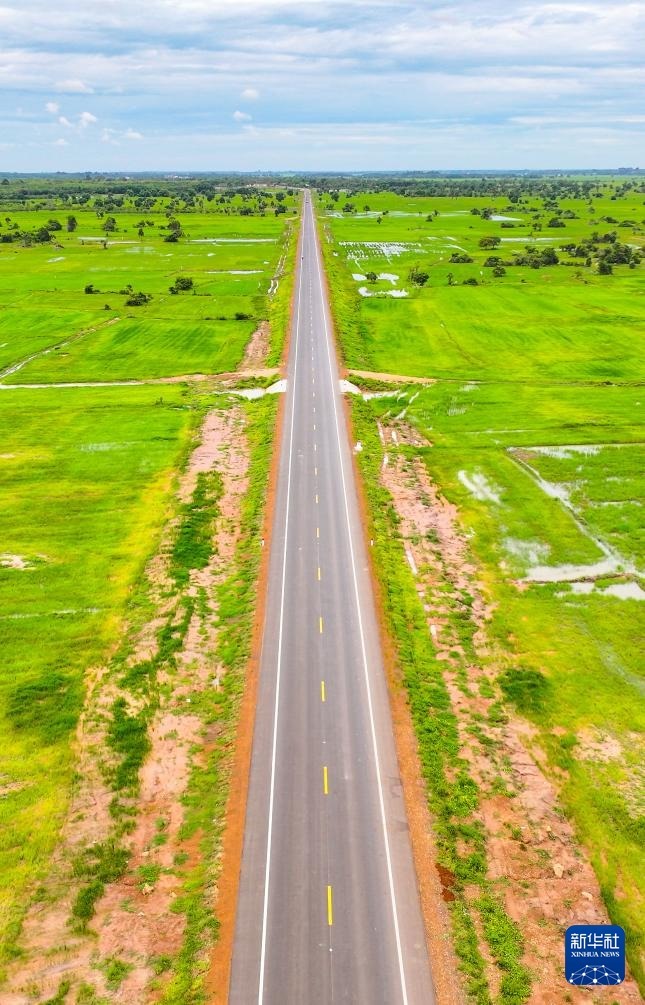 這是2024年7月14日在柬埔寨特本克蒙省拍攝的71C號國家公路(無人機(jī)照片)。新華社發(fā)(尼多拉攝)