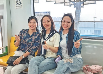 越南河內(nèi)市民點贊由中企承建的該國首條城市輕軌吉靈—河東線。