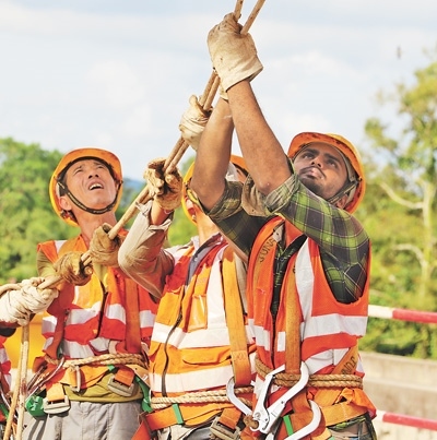 中外工人在東海岸鐵路項(xiàng)目上合作施工。