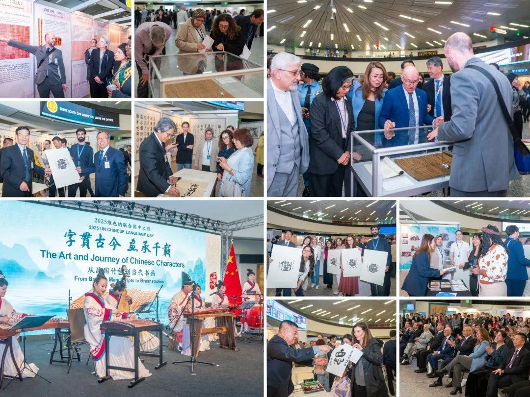 來賓懷著濃厚興趣參觀戰(zhàn)國竹簡、中國傳統(tǒng)繪畫和書法作品展覽,深切感受中國文字、文化、文明的發(fā)展傳承、美學(xué)意境和時代意義。蘇士澍、徐里、包俊宜、羅楊等書畫家現(xiàn)場揮毫潑墨,身著漢服的藝術(shù)家演奏《春江花月夜》《滄海一聲笑》等傳統(tǒng)名曲,獲得觀眾陣陣熱烈掌聲。來賓們表示,聯(lián)合國中文日選在中國傳統(tǒng)節(jié)氣“谷雨”,正像中國在聯(lián)合國發(fā)揮的重要作用,帶來春天般的希望和動力。