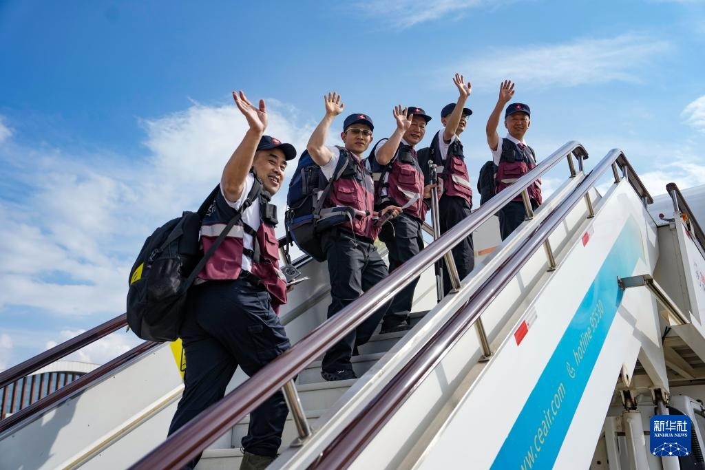 4月19日,12名從北京出發(fā)的隊(duì)員從北京首都機(jī)場離京。新華社記者 張玉薇 攝