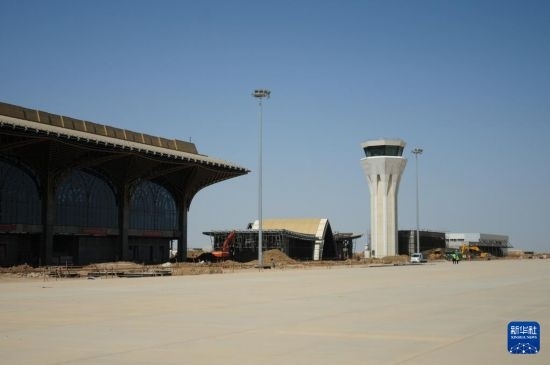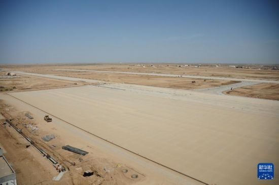 這是4月8日在伊拉克濟(jì)加爾省拍攝的由中國建筑集團(tuán)有限公司承建的納西里耶國際機(jī)場項(xiàng)目施工現(xiàn)場。新華社記者 段敏夫 攝