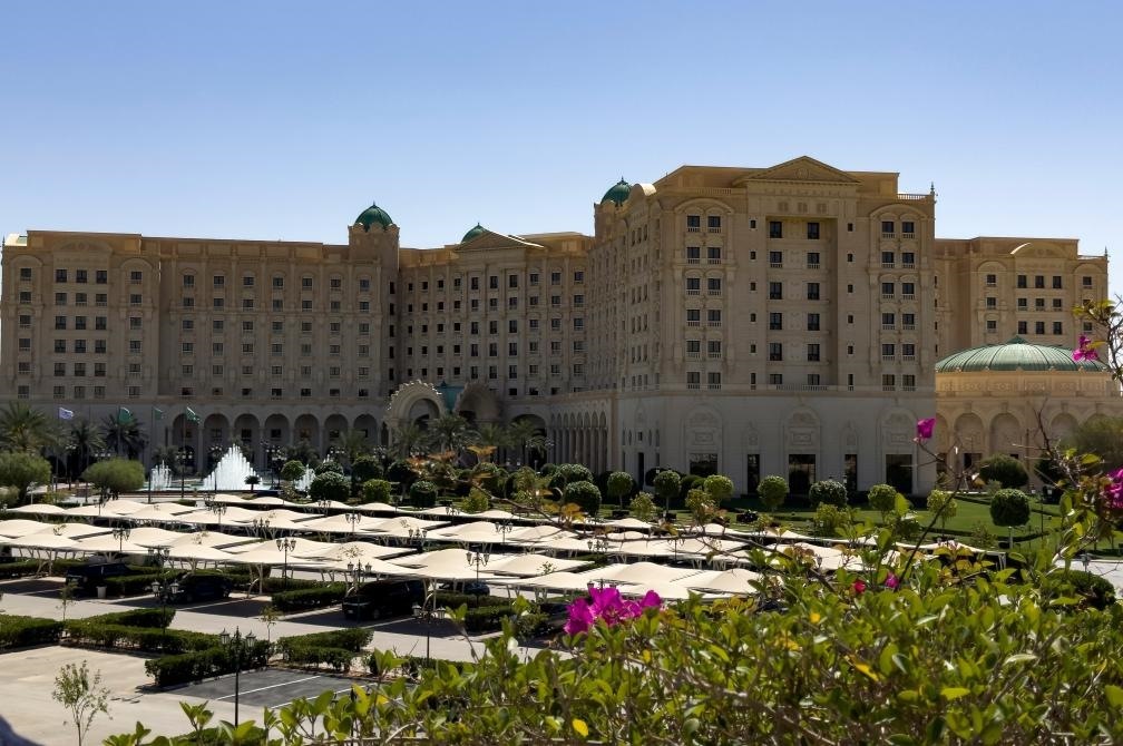 3月24日,美國和俄羅斯代表團在沙特阿拉伯首都利雅得舉行會談。圖為美俄代表團舉行會談的酒店。新華社記者王東震攝