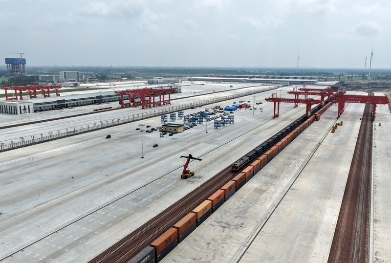 6月28日,一班列車在鄭州國(guó)際陸港核心功能區(qū)啟動(dòng)運(yùn)行。