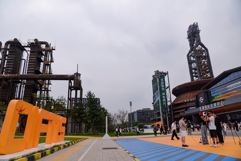 9月10日,在首鋼園四高爐,參會人員進(jìn)出會議區(qū)。