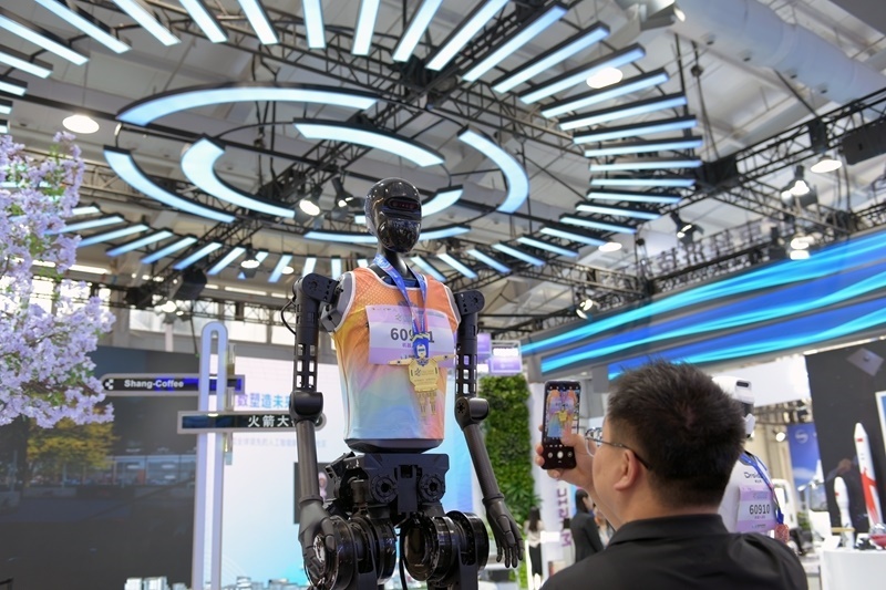 9月10日,參展者在服貿(mào)會展廳的北京經(jīng)濟(jì)技術(shù)開發(fā)區(qū)展位拍攝機(jī)器人。