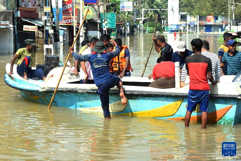 12月1日,在斯里蘭卡首都科倫坡郊區(qū),救援人員將受洪澇影響的民眾轉移至安全地點。新華社發(fā)(加揚·薩米拉攝)