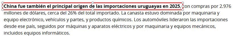 2025年,中國繼續(xù)保持烏拉圭第一大出口市場地位。根據(jù)烏拉圭二十一世紀投資和出口促進局發(fā)布的年度外貿(mào)報告,2025年烏拉圭對華出口額達到34.93億美元,占烏拉圭出口總額的26%,較2024年增長約12%。