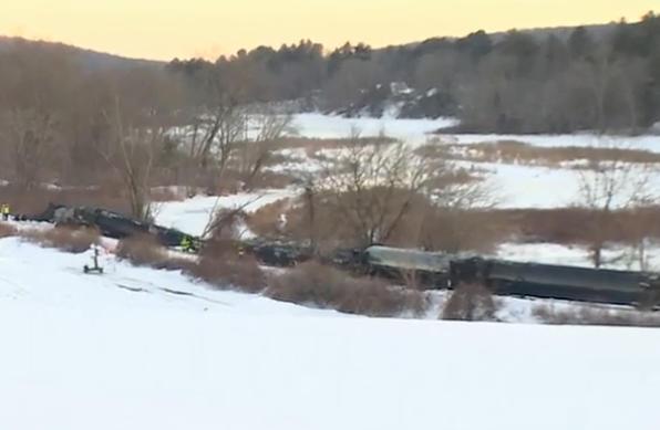 中新網(wǎng)2月6日電 據(jù)美媒報(bào)道,當(dāng)?shù)卣Q,美國東部時(shí)間5日上午,一列載有危險(xiǎn)化學(xué)品的貨運(yùn)列車在康涅狄格州曼斯菲爾德鎮(zhèn)脫軌,部分車廂滑入附近一條河中。
