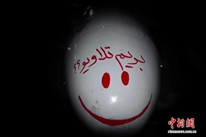 伊朗法爾斯通訊社發(fā)布的圖片顯示,伊朗伊斯蘭革命衛(wèi)隊向以色列特拉維夫發(fā)射的“目擊者-136”無人機,彈頭上用波斯語寫著“我們?nèi)ヌ乩S夫吧”,并畫了個笑臉。