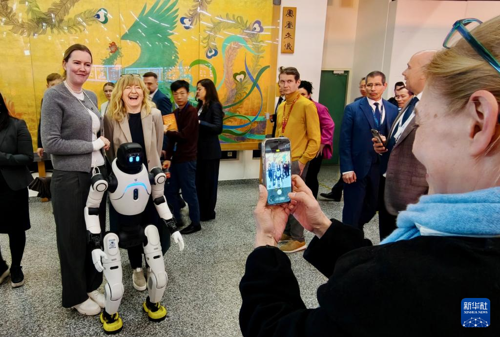 4月13日,在奧地利維也納國際中心,人們?cè)谝浴疤统錆M——在維也納聯(lián)合國遇見故宮”為主題的2026年維也納聯(lián)合國中文日系列活動(dòng)上與機(jī)器人合影。 新華社發(fā)(王宙攝)