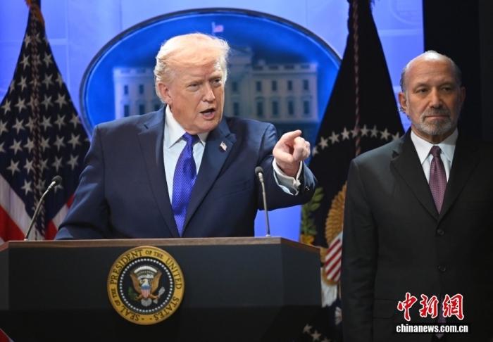 當(dāng)?shù)貢r間2月20日,華盛頓,美國總統(tǒng)特朗普在白宮就最高法院關(guān)稅裁決舉行記者會。中新社記者 陳孟統(tǒng) 攝