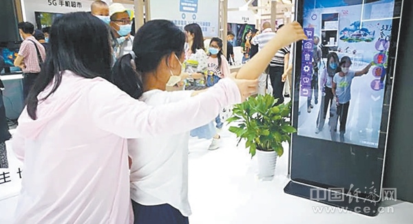 在2020服貿(mào)會5G通信服務專題展區(qū),觀眾正體驗“AR試衣鏡”。經(jīng)濟日報-中國經(jīng)濟網(wǎng)記者崔國強攝