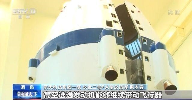 航天科技集團(tuán)一院長征二號(hào)F火箭總指揮 荊木春:飛行到120秒的時(shí)候,就把逃逸塔拋掉了,這個(gè)時(shí)候如果再需要進(jìn)行逃逸,我們就在整流罩上又裝了4臺(tái)叫高空逃逸發(fā)動(dòng)機(jī)。出現(xiàn)故障的話,高空逃逸發(fā)動(dòng)機(jī)能夠繼續(xù)帶動(dòng)飛行器脫離故障火箭。