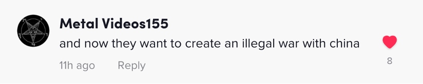 網(wǎng)友Metal Videos155:“不僅如此,現(xiàn)在美國還想要發(fā)動(dòng)一場非法的對華戰(zhàn)爭?!?/p>