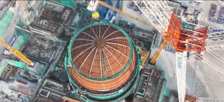 海南昌江:“華龍一號(hào)”核電3號(hào)機(jī)組內(nèi)穹頂?shù)跹b