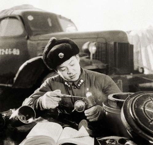 這是雷鋒(左三)向戰(zhàn)友傳授安全行車(chē)和節(jié)油的經(jīng)驗(yàn)(資料照片)。新華社發(fā)