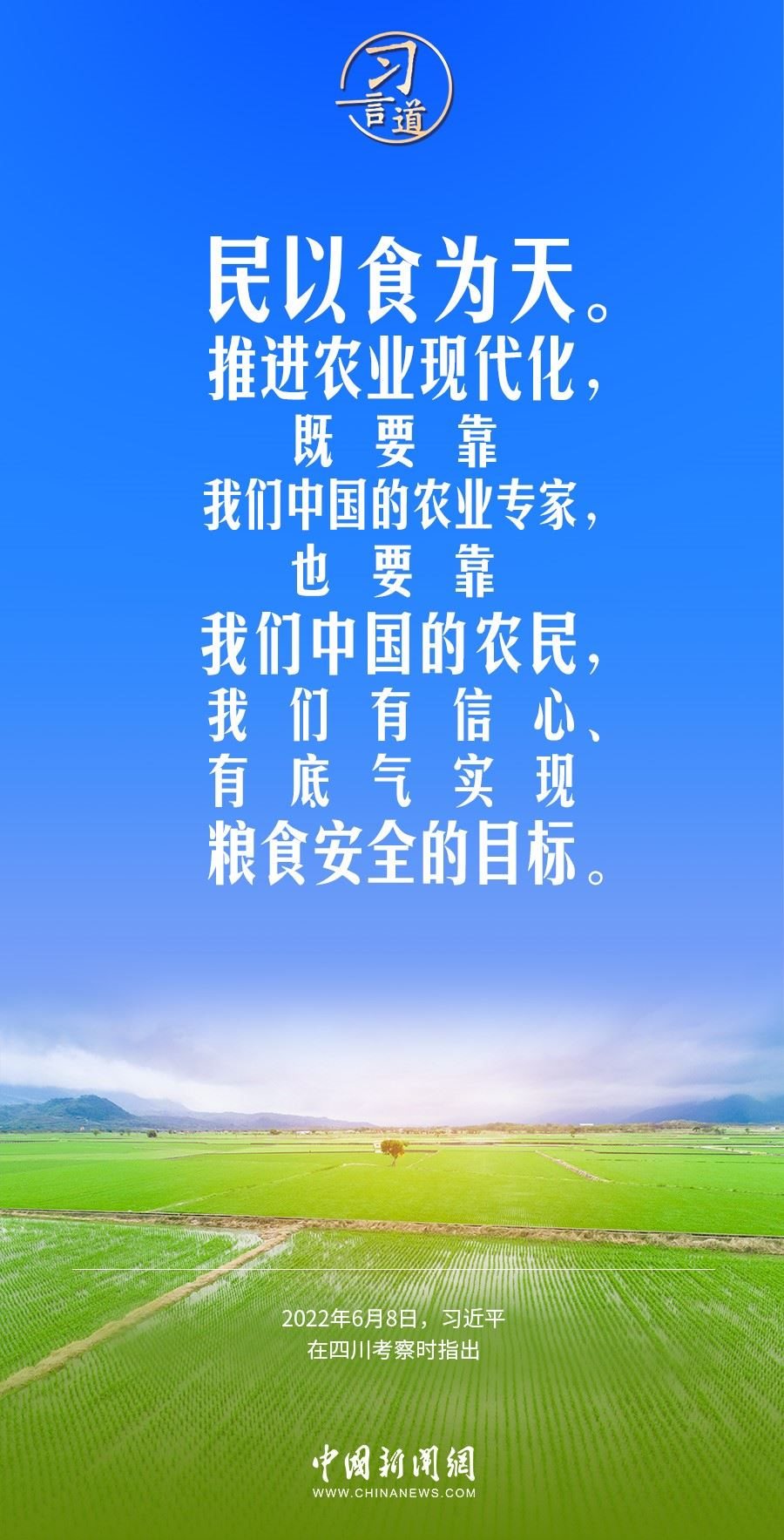 沒有農(nóng)業(yè)現(xiàn)代化,沒有農(nóng)村繁榮富強(qiáng),沒有農(nóng)民安居樂業(yè),國(guó)家現(xiàn)代化是不完整、不全面、不牢固的。習(xí)近平總書記高度重視“三農(nóng)”工作,多次就推進(jìn)農(nóng)業(yè)現(xiàn)代化作出重要論述。