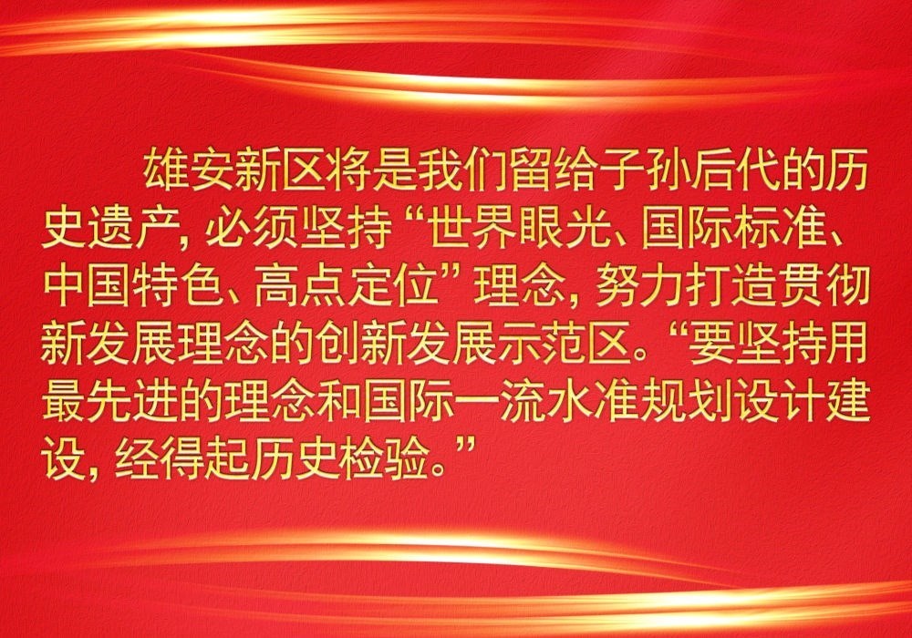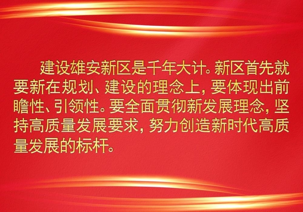習(xí)近平總書記高瞻遠矚謀劃推動雄安新區(qū)規(guī)劃建設(shè),他強調(diào),要貫徹高質(zhì)量發(fā)展要求,創(chuàng)造“雄安質(zhì)量”,在推動高質(zhì)量發(fā)展方面成為全國的一個樣板。