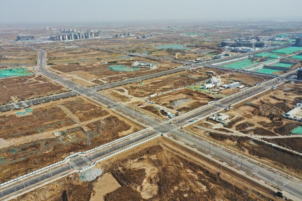 這是雄安新區(qū)啟動區(qū)內(nèi)的路網(wǎng)(3月24日攝,無人機照片)。