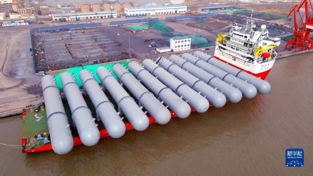 當(dāng)日,由位于山東省榮成市的一家重工企業(yè)制造的超大型石油液化氣儲罐啟運(yùn)安哥拉。這些大型“巨無霸”石油液化氣儲罐每臺直徑8米、長80米、重約480噸。據(jù)了解,2022年以來,山東省榮成市從石島港向“一帶一路”國家出口大型裝備160多臺(套)。新華社發(fā)(楊志禮攝)