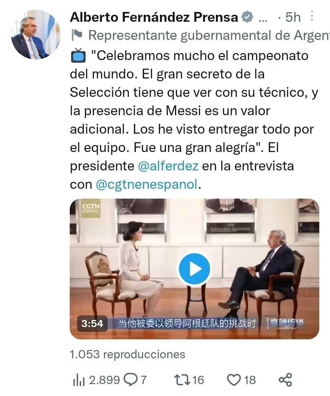 △阿根廷總統(tǒng)費(fèi)爾南德斯個人賬號發(fā)布十余條推文展示專訪內(nèi)容