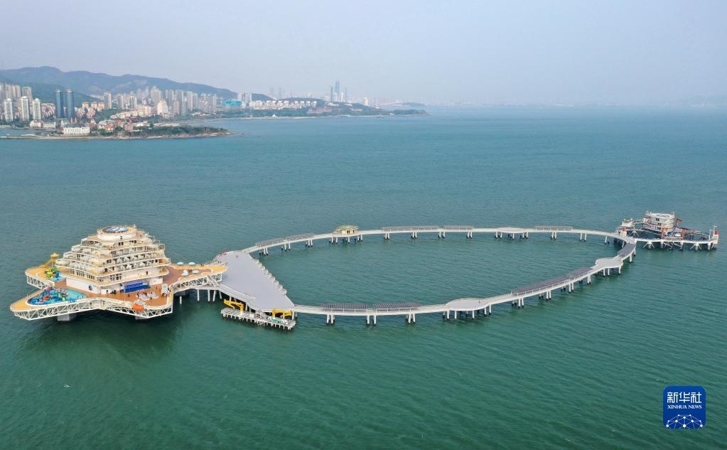 當(dāng)日,位于山東省煙臺(tái)市萊山區(qū)的“耕海1號(hào)”海洋牧場(chǎng)綜合體二期項(xiàng)目投入運(yùn)營(yíng)?!案?號(hào)”集漁業(yè)養(yǎng)殖、海上觀光、休閑垂釣、餐飲住宿、科研科普等于一體,創(chuàng)新性實(shí)現(xiàn)現(xiàn)代海洋漁業(yè)、海洋工程技術(shù)和海洋文化旅游產(chǎn)業(yè)深度有機(jī)融合。新華社發(fā)(唐克攝)