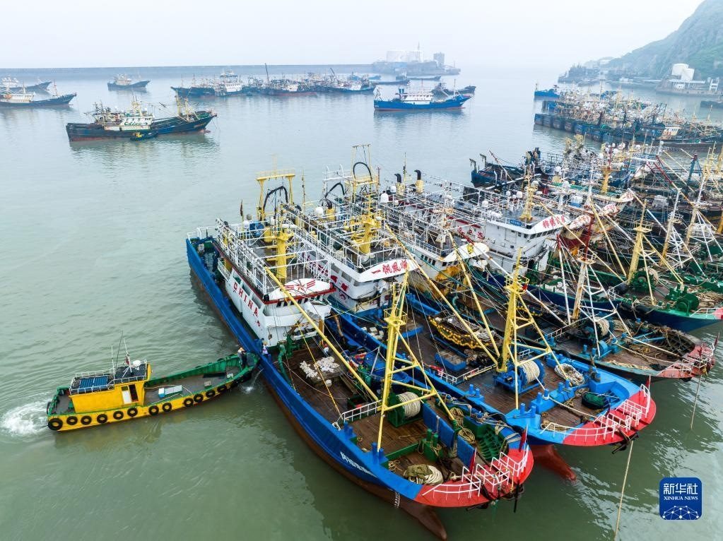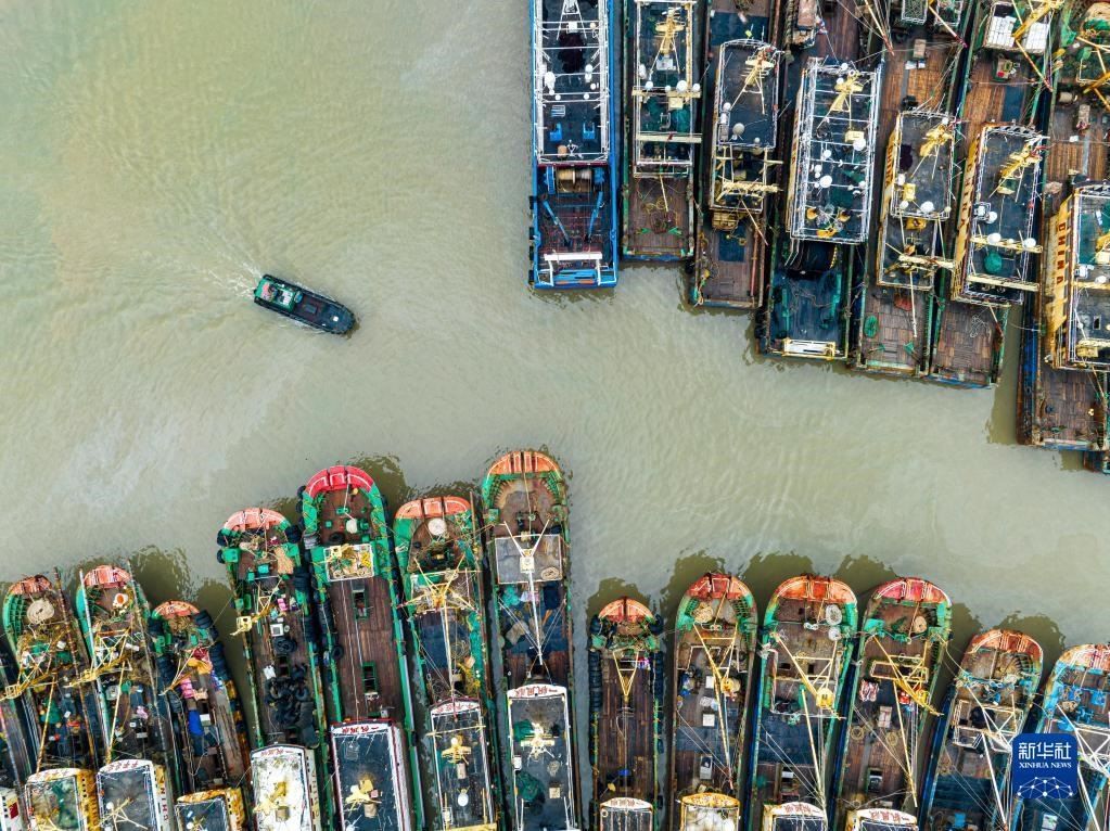當日,在浙江省溫嶺市石塘鎮(zhèn),漁船陸續(xù)進港???,迎接即將到來的休漁期。新華社發(fā)(徐偉杰攝)
