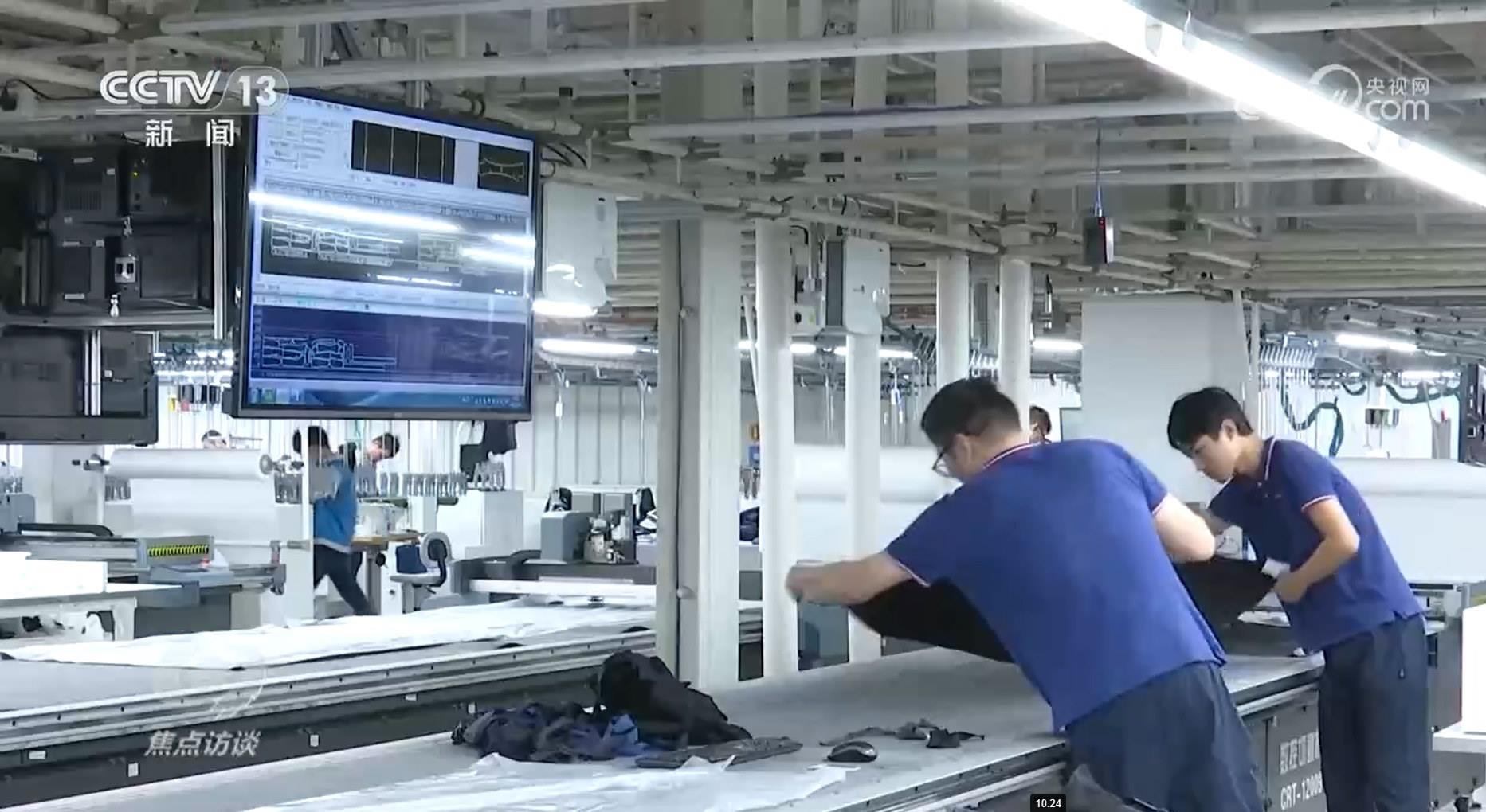 青島酷特智能股份有限公司經(jīng)理劉阿娜:“全球的客戶只要把一些核心的數(shù)據(jù)給到我們,幾秒鐘后會自動生成客戶想要的版型,進入生產(chǎn)?!?/p>