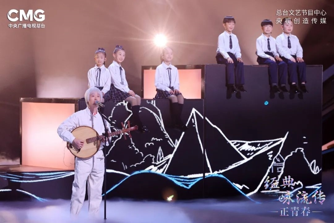 “逝者如斯夫,不舍晝夜?!痹跁r(shí)光的流逝中,最值得懷念的是那一去不復(fù)返的青春。無數(shù)文人墨客通過文字去珍藏時(shí)光的記憶,去尋找青春的蹤跡?!耙蝗~漁船兩小童,收篙停棹坐船中”,宋朝詩人楊萬里用一首清新自然的《舟過安仁》記錄美好童年。而對(duì)于很多現(xiàn)代人來說,童謠寄托著童年的回憶。“尋謠計(jì)劃”項(xiàng)目發(fā)起人小河將楊萬里的詩詞巧妙改編成童謠,帶來充滿童趣的《搖船》舞臺(tái)。當(dāng)天真爛漫的孩童將詩詞娓娓唱出,瞬間帶領(lǐng)觀眾穿越回詩中場景,也穿越回記憶中的童年?,F(xiàn)場還迎來一位特殊的嘉賓——84歲老人何洪瑞。他與小河還有孩子們一同唱響了記憶深處的童謠《盧溝橋》,此刻,跨越時(shí)間的永恒情感就這樣在音符中碰撞、交融。