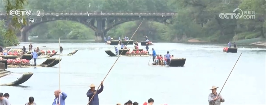 總臺(tái)記者 劉夢(mèng)齡:我現(xiàn)在所在的位置是福建武夷山景區(qū)的九曲溪竹筏碼頭?!拔逡弧奔倨诘牡诙欤湟纳骄皡^(qū)迎來(lái)了客流的最高峰,九曲溪竹筏漂流是景區(qū)里最熱門(mén)的旅游項(xiàng)目之一,為了更好服務(wù)游客,景區(qū)每天開(kāi)行竹筏漂流12趟,最多能滿足8000名游客的需求。