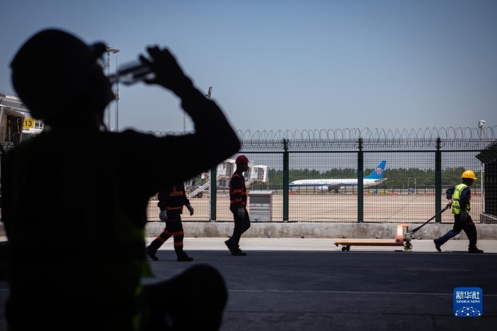 5月1日,工人在浙江省臺州市路橋機(jī)場改擴(kuò)建項(xiàng)目施工現(xiàn)場施工。