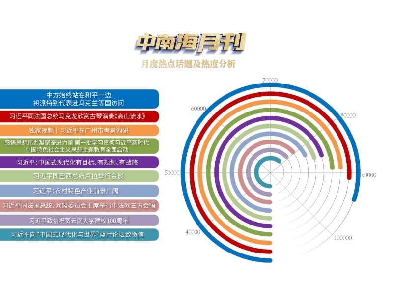 央視網(wǎng)“智聞”系統(tǒng)提取分析4月全網(wǎng)時政新聞熱點(diǎn)顯示,“中方始終站在和平一邊,將派特別代表赴烏克蘭等國訪問”“中法元首非正式會晤”“習(xí)近平在廣州市考察調(diào)研”等話題備受關(guān)注。