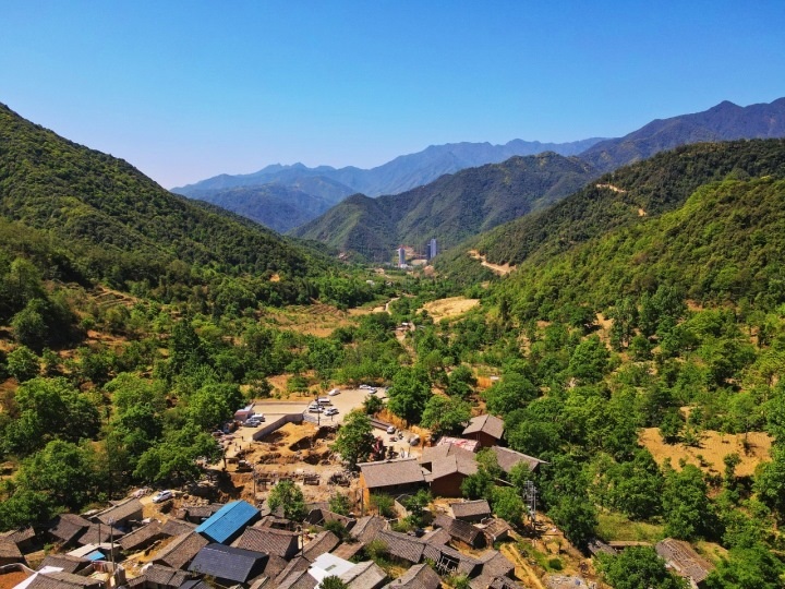 正值“五一”假期,潮新聞?dòng)浾咦哌M(jìn)了八一村,沿著一條新修的水泥路在大山中蜿蜒穿行,一棵棵花椒樹(shù)點(diǎn)綴在成片的茶園梯田里,目之所及皆綠意盎然。村民們正埋頭在茶地里澆水灌溉,工人們則忙碌地搬磚運(yùn)土,一個(gè)個(gè)精美的民宿小屋呼之欲出——未來(lái),這里將變成一個(gè)以民宿、旅游綜合體為主的航天文旅村。