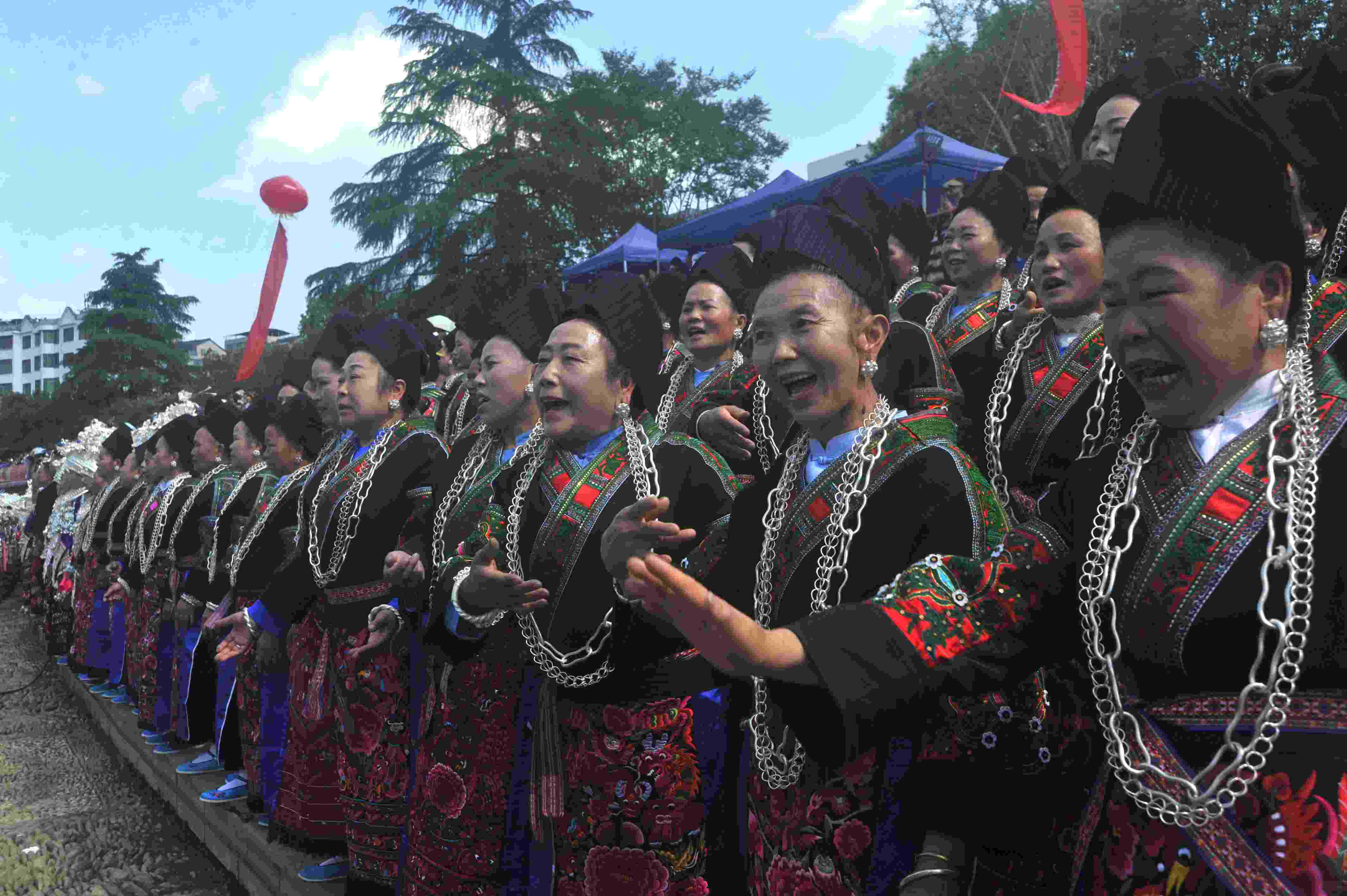 2023年5月3日,苗族同胞在貴州省臺江縣翁你河畔對唱苗歌。當(dāng)日,貴州省臺江縣九個苗族支系的萬余名苗族男女歌手齊聚縣城翁你河畔,對唱苗族古歌、苗族多聲部情歌和飛歌,向世人展示古樸濃厚的苗族文化底蘊(yùn)。 (寧堅 鄧永生)
