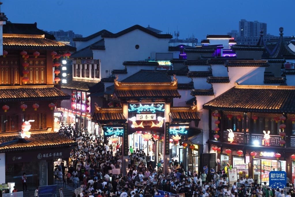 5月2日晚,游客在南京夫子廟景區(qū)參觀游覽。