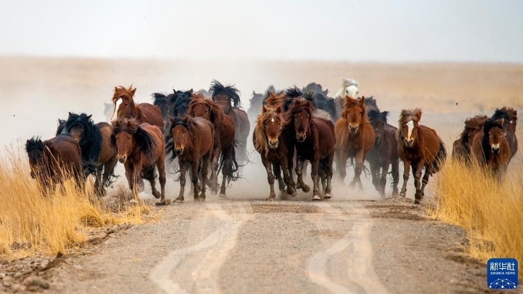 甘肅阿克塞:馬群轉(zhuǎn)場