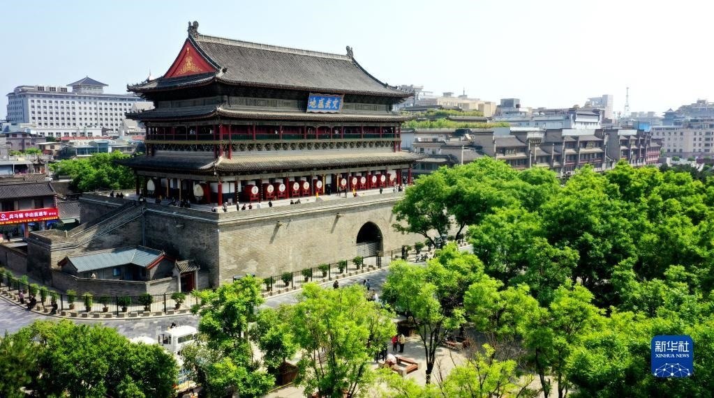 西安鐘樓(5月1日攝,無(wú)人機(jī)照片)。