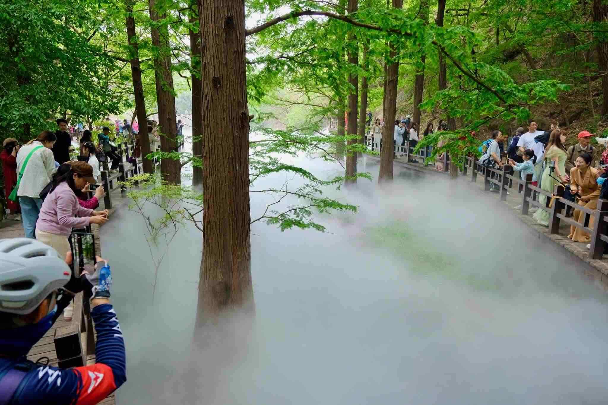 2023年5月6日,北京,立夏時(shí)節(jié),萬物繁茂,國家植物園櫻桃溝景區(qū)“云霧繚繞”宛若“仙境”。視覺中國