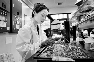 2022年8月7日,浙江農林大學現(xiàn)代農學院學生在實驗室開展科學研究。陳勝偉攝/光明圖片