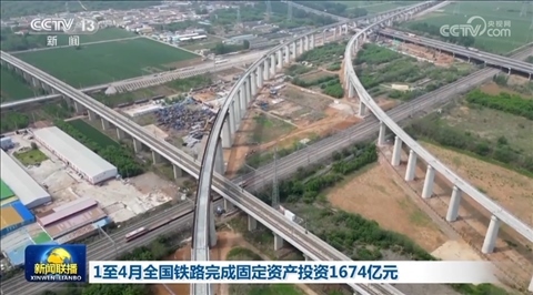 央視網(wǎng)消息(新聞聯(lián)播):國鐵集團今天(5月9日)發(fā)布的數(shù)據(jù)顯示,1—4月,全國鐵路完成固定資產(chǎn)投資1674億元,同比增長6.3%。