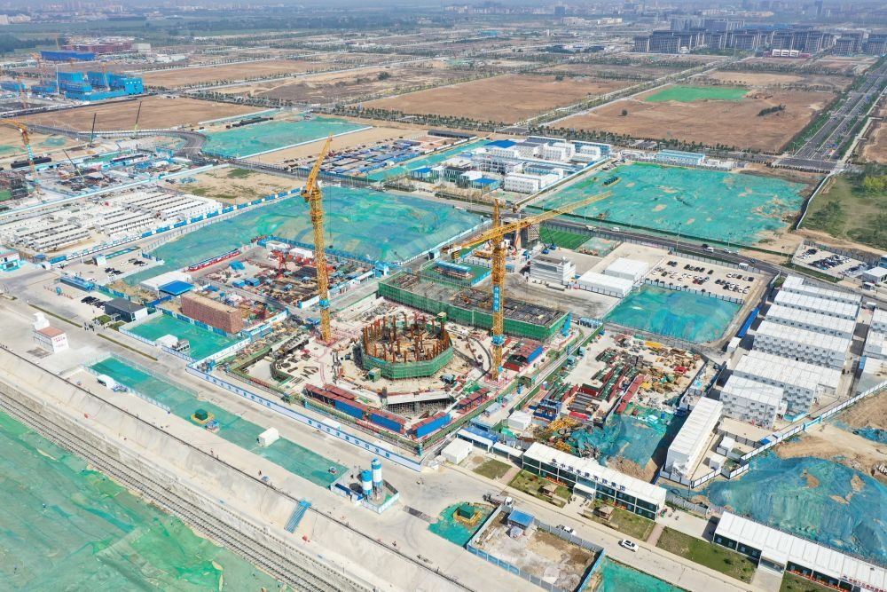 位于雄安新區(qū)啟動(dòng)區(qū)的中國中化雄安總部001大廈項(xiàng)目現(xiàn)場(2023年5月9日攝,無人機(jī)照片)。新華社記者 朱旭東 攝