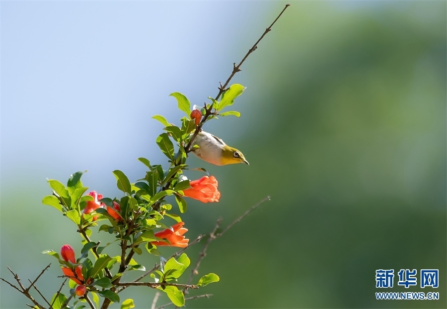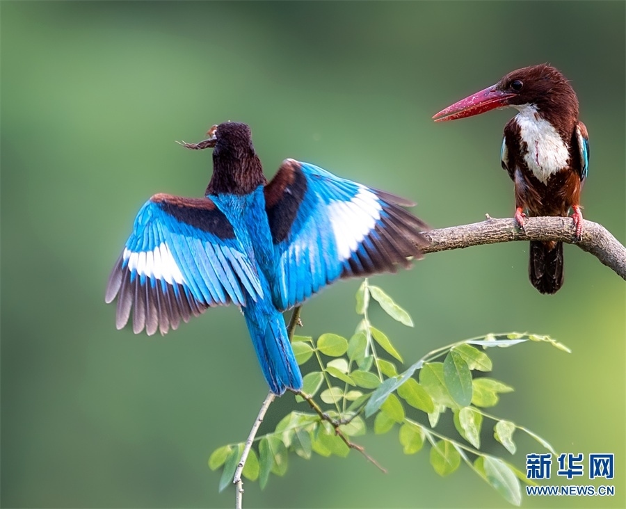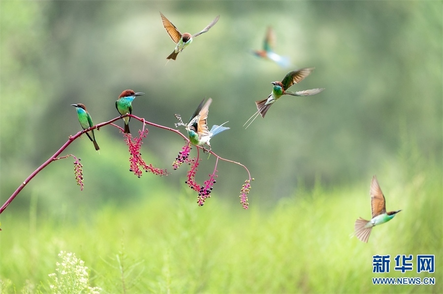河南省信陽市新縣位于南北氣候過渡帶,地跨長江、淮河兩大流域,植被覆蓋率達(dá)95%,森林覆蓋率達(dá)76.7%。得天獨(dú)厚的自然生態(tài)環(huán)境,吸引了藍(lán)喉蜂虎、藍(lán)翡翠、戴勝等眾多鳥類在這里“安營扎寨”,繪出一幅生動(dòng)和諧的自然畫卷。新華網(wǎng)發(fā)(闞敦傳 攝)