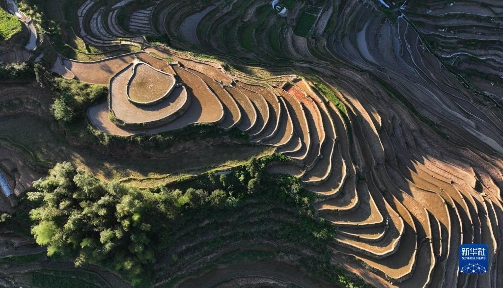 近日,湖南省婁底市新化縣紫鵲界梯田蓄水備耕,水影天光如詩如畫。新華社記者 趙眾志 攝