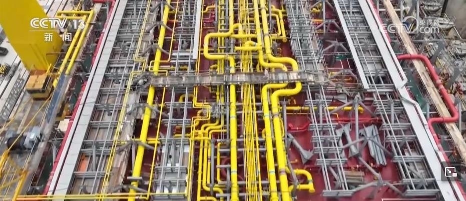 這艘船除了大,技術(shù)也十分先進(jìn)。這上面有一些密密麻麻的管道,是用來處理加工從海底開采出來的原油,再進(jìn)行提煉、分離。其實(shí),我們可以通俗理解它就是一個海上可以移動的化工廠。