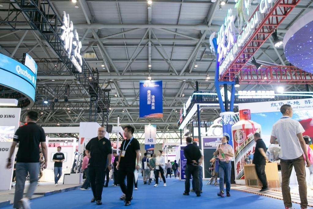 18日,觀眾從“西洽會”重慶館前走過。新華社記者黃偉 攝